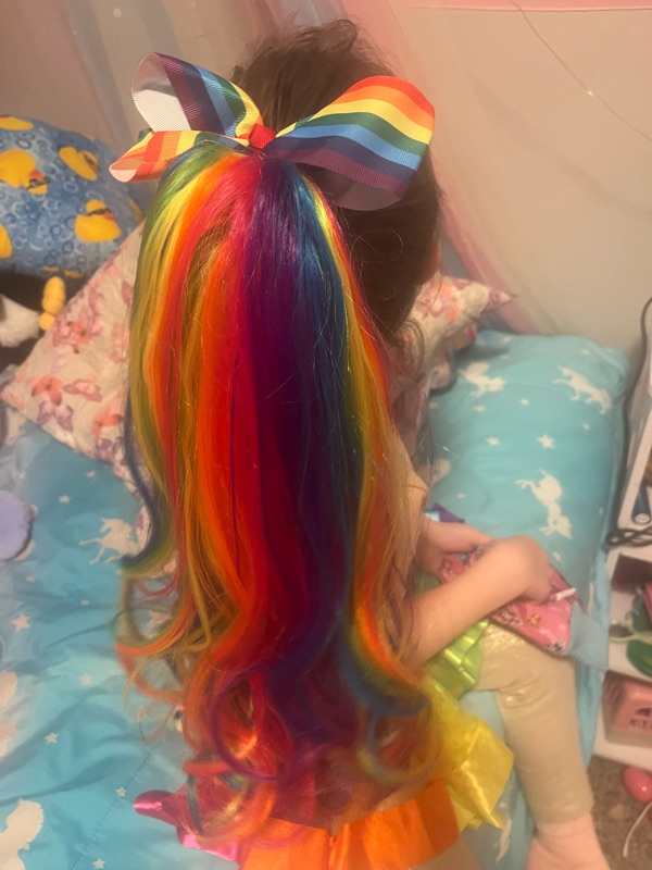 nothing to wild today. Work was busy again they are moving everything around and everything is urgent. I am training still too so it slows everything down quite a bit. After work I bought Luna a rainbow hair clip and she loved it. She wore it most of the night. Then we just played around the house