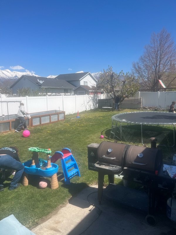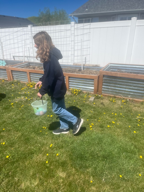 Well the gutter guy showed up about 10 minutes before it started rain/snowing. He stayed until about lunch then he left. Me and mom went upto Park City and got new shoes. Then we came home and had lunch. We watched a movie. After dinner we filled easter eggs. I hope everyone had a great day. Bye