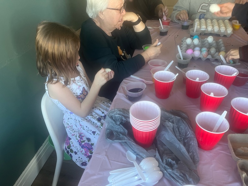 thanks again for coming down and having a fun Easter party. Luna loved her Easter stuff and played with the dolls Ruth gave her all day. We rode bikes and made cookies