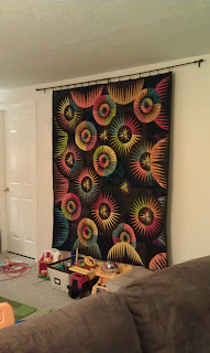Good job Karen, I had forgotten about the 5th of November. You have a good memory. Today was good. When Mom and Dad came up for Halloween we were are the fabric store and we noticed that they hung their quilts up with curtain rods. I went to the store and priced them today and it was only thirty dollars for everything so I got it. I hung up the sea urchin quilt downstairs and I love it. We didn't have enough pictures downstairs and this really helps. It makes me so happy. It is nice because you can switch the quilt whenever you like. You don't have to sew sleeves on the quilt. Today at lunch we meet Casey at the park because it was a nice day. At the end Isaac shoved all this food into his mouth and wouldn't swallow it. He kept eating a apple on top of it and it was super gross. We were laughing at him and it was funny. But tonight he did it again. After he was done he filled his mouth full of pasta and wouldn't swallow it. he would just walk around with a mouth full of food. I think that he wanted our reaction again so we tried hard not to laugh at him. I hope he forgets about it tomorrow. I hope that everyone has a good night. I can't believe how soon you are moving Mom. It will be here before you know it.