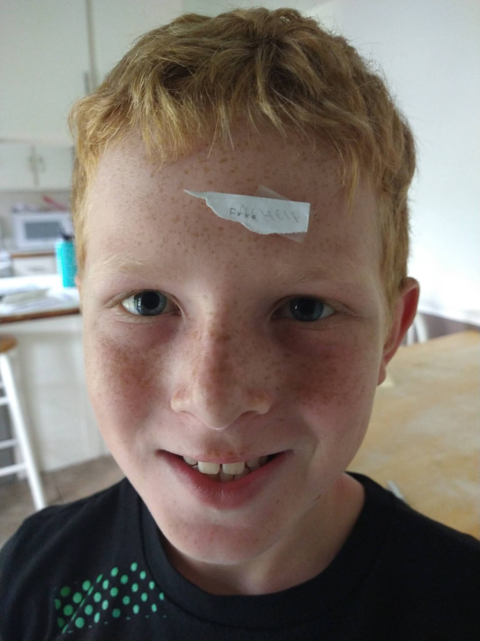 Today was good. I walked and went to exercise class. We did High which is fun. Ruth had something smell bad in her room. We I cleaned it and in the process ruined her life. She was pretty dramatic about it. We walked to school and she dropped her water bottle which was also awful. I had Tony so I couldn't walk her in. She was pretty upset about that. She saw her friend who sits next to her and they walked in together. She was happy after school. They boys were happy also. They are all having a good year so far. Casey is working late and is still there. I had book group but skipped it. We had a nice evening. The kids played so nice together. The picture of Isaac is he had a sign on his forehead that said free help backward. He was helping his classmates with math. He said he would help us with life. It made me laugh. Love you guys.