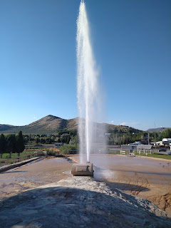 Ruth woke up at 3 and had a fever. She threw up at 5 and then was able to sleep after that. She threw up again after breakfast. Max got her some nausea medicine and she took and bath. She laid down for a bit and then felt fine the rest of the day. Everyone went to the cave again and I felt bad leaving Ruth so I stayed home also. They saw a spring and the geyser also. For lunch we had the summer Halloween party. Mandy did a amazing job with all the treats and decorations. It was a lot of fun. We went to the gun range. Ruth wouldn't shoot but everyone did really well. Oliver really liked shooting Dads rifle. We stopped and saw the geyser because it was shooting off. It was neat to see. I have a ton of pictures and they aren't on order because they are from different people.